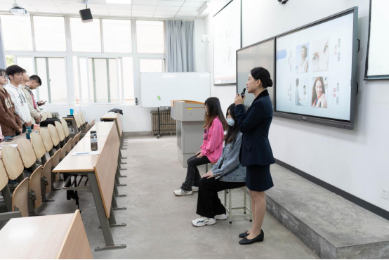 3.同时陈老师详细介绍了男生和女生在求职过程中的衣着要求和搭配法则,针对性地对学生形体、站姿、坐姿等进行指导,提出建议。