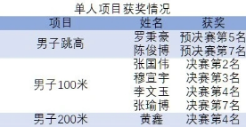在学生男子甲组100米比赛中,张国伟荣获银奖,穆宣宇荣获铜奖,李文玉、张瑜博也分别获得第四名和第七名的好成绩。