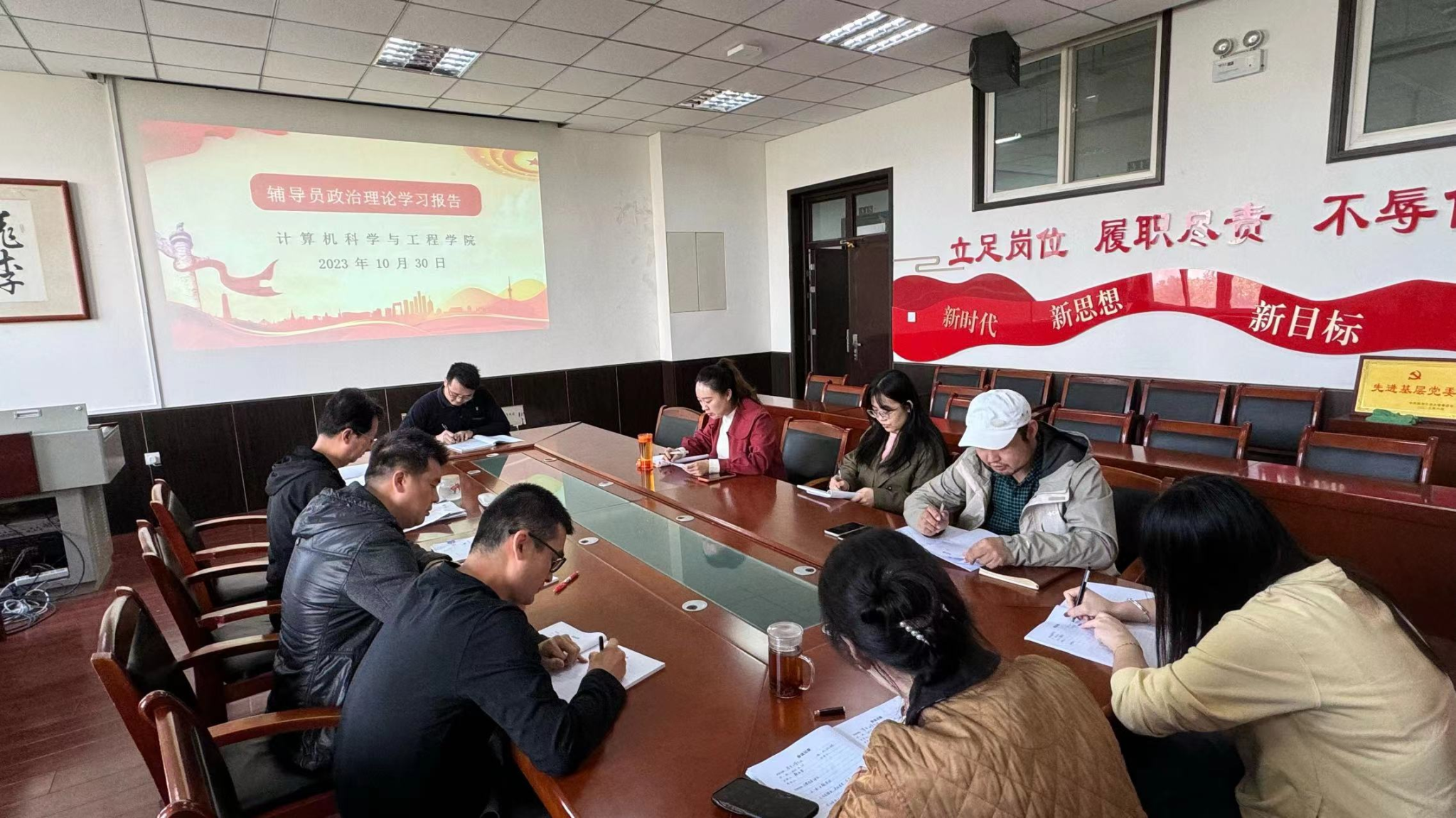 会上,首先进行辅导员思想政治理论学习。22级计算机科学与技术专业辅导员许格宁带领大家一起学习习近平总书记“典”明网络安全要义。