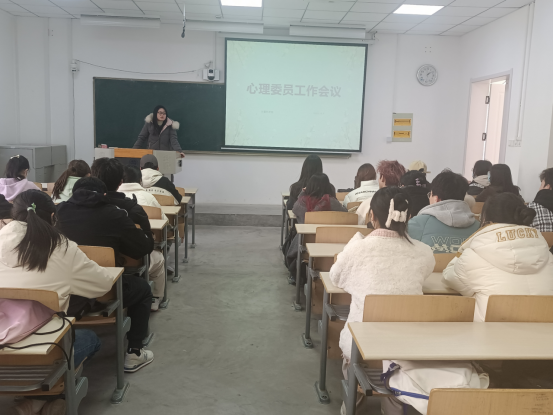 王梦馨老师首先讲述了心理委员的工作职责,表示心理委员在班里应做好心理健康知识的宣传与教育工作,通过班级活动和日常的关注给予心理有困惑的同学疏导和帮助;随后王梦馨老师就大学生心理健康的知识向在场的心理委员做了讲解,从大学生心理健康的标准、心理问题的识别与应对两个方面入手,向心理委员们科普了大学生常见心理问题类型、症状及识别心理问题严重程度的方法和判断标准;最后王梦馨老师强调到,班级心理委员应随时关注班级同学的心理健康状况,如班级同学出现异常状况,一定要及时告知辅导员老师。