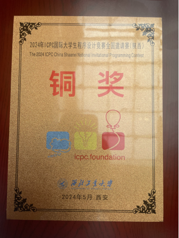 2024年5月18-19日,2024年ICPC国际大学生程序设计竞赛全国邀请赛(陕西)在西北工业大学开幕。我校3044永利集团杨墨润柳、邓琦文、许家烨等3位同学组建的“unparalleled”队伍,在赵莉等教师指导下积极组织训练,认真备赛,最终荣获了赛事的铜奖。这是永利集团3044首次在ICPC赛事中获得铜奖,实现了历史性的突破。