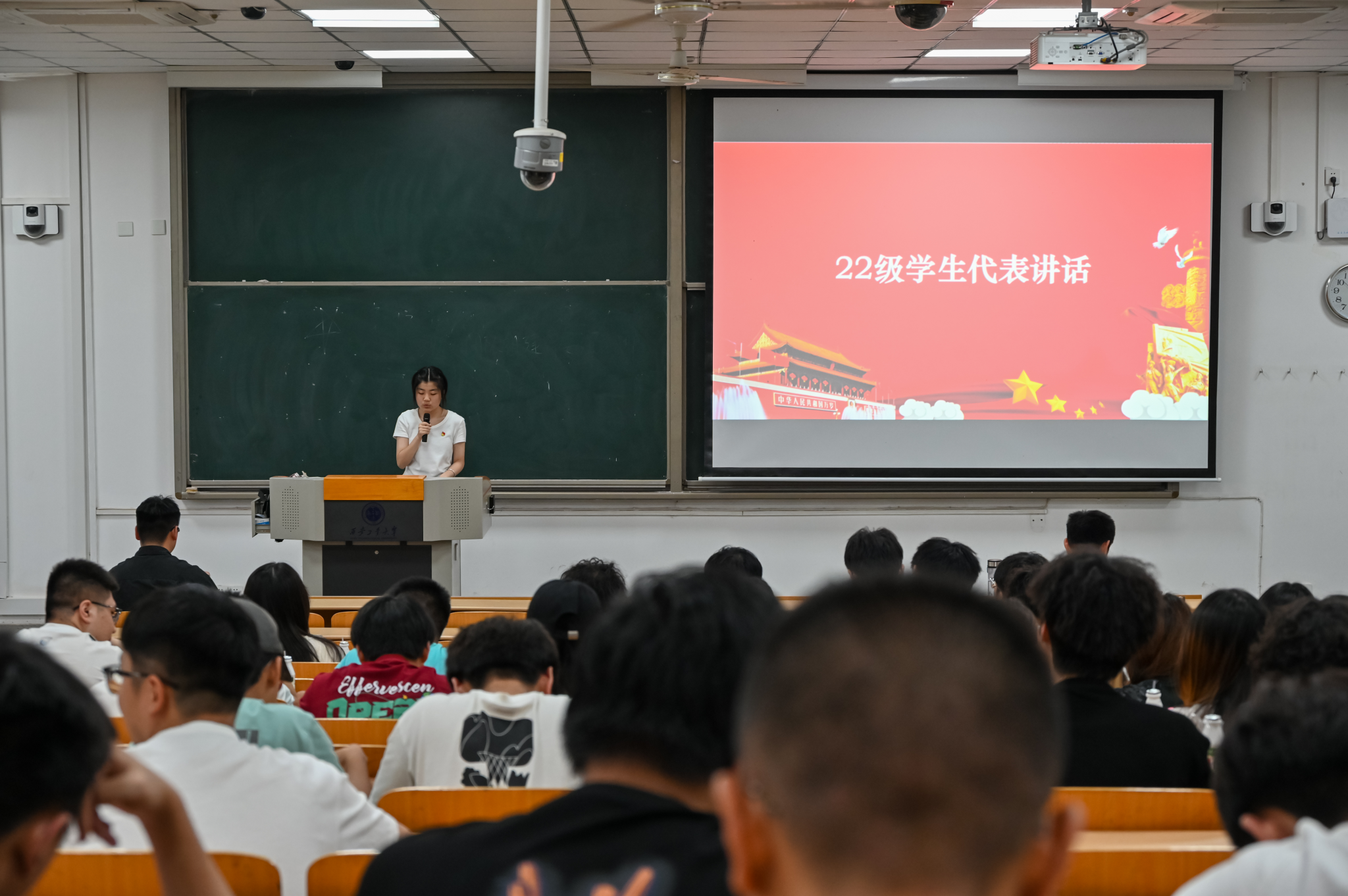 随后,22级数据科学与大数据专业学生李文欣,作为学生代表上台发言。她希望全体同学一起行动起来,在学习中不断进步,在服务中锻炼能力,在贡献中实现自我价值,让青春,因红心向党而更加精彩!