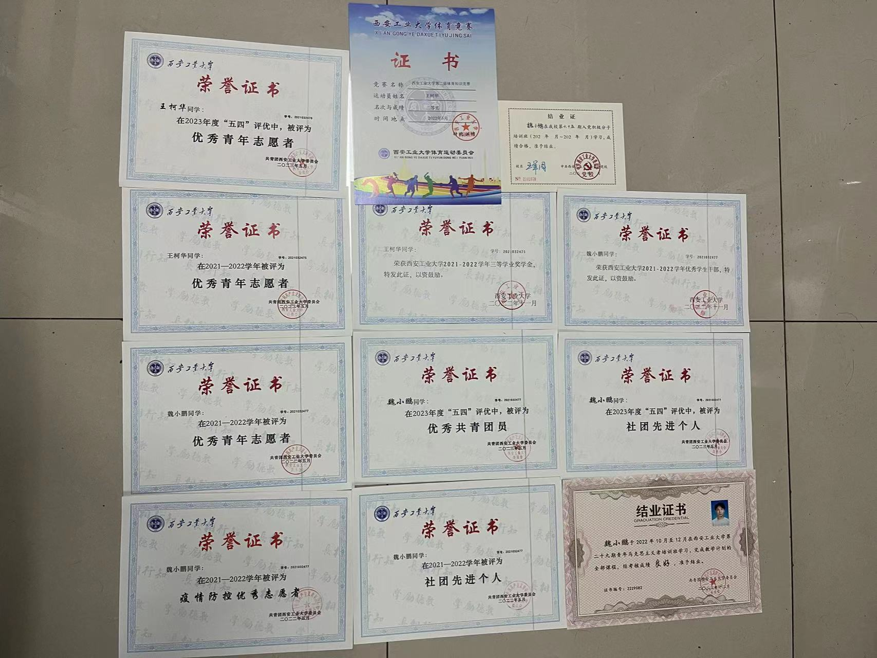绩点在专业前30%接近半数、宿舍整体无挂科。积极参加学校组织的各类比赛,也荣获许多奖项,王柯华获得2021~2022优秀志愿者、2022~2023优秀志愿者、校级体育知识竞赛二等奖、三等学业奖学金;魏小鹏在获得2022优秀疫情防控志愿者、2021~2022优秀志愿者、2022社团先进个人、校级优秀学生干部、优秀共青团员、国家励志奖学金、互联网+校赛铜奖,宿舍团体获得2022年度五四红旗团小组