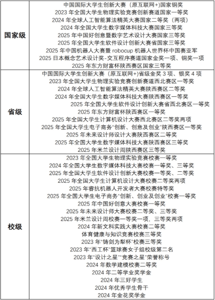 这次经历激发了她进一步参与实践的兴趣。此后,她逐步参与到更具挑战性的技术项目中。她参加了全球人工智能算法精英大赛中获国家二等奖。她在项目中参与部分算法实现和功能测试,初步掌握了模型训练的基本流程。同年,她参与“智援归途——基于地图定位与人脸识别的智能寻人系统”开发,在全国大学生计算机设计大赛中获得西北赛区二等奖,主要协助完成人脸识别模块的测试与优化。通过这些项目,她逐步了解了从需求分析到系统实现的基本开发流程,也在实践中不断提升技术应用能力。这些经历让她逐渐熟悉了从需求分析、技术选型到系统实现的完整开发流程。