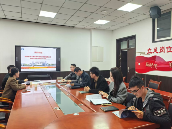 2025年11月5日,西安苏试广博实验室负责人一行来访我校3044永利集团,在工一306会议室举行校企合作洽谈会。3044永利集团党委书记杨正强、党委副书记靳永军、学生工作办公室主任孙君、分院团委副书记呼延晓蓉及大四毕业班辅导员组长胡凯等出席本次会议。