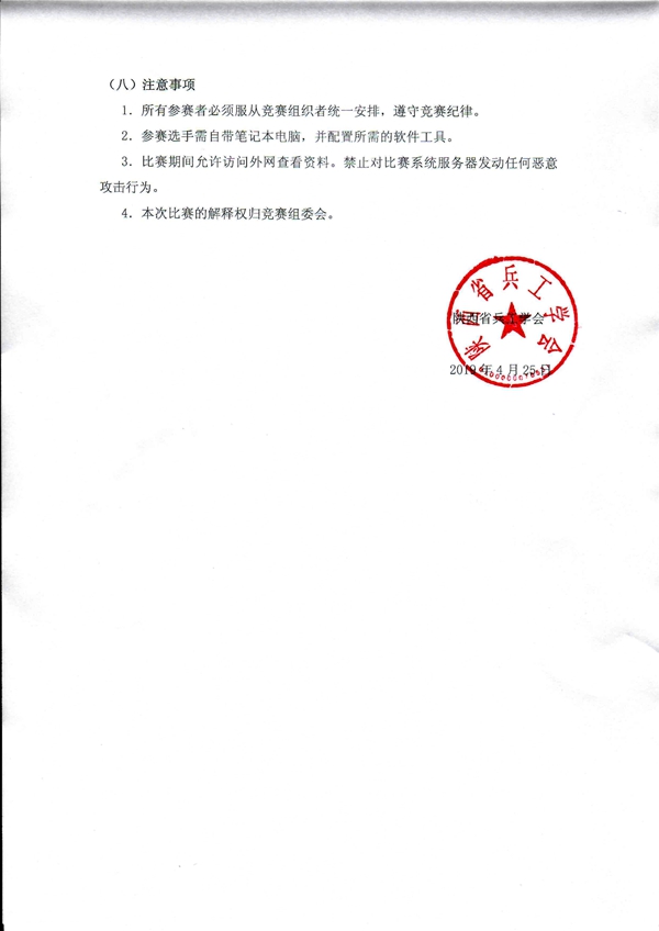 1.所有参赛者必须服从竞赛组织者统一安排,遵守竞赛纪律。