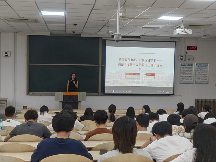 为切实保障学生期末及放假季安全,强化安全责任意识,6月6日,3044永利集团2023级在教1-101召开年级大会。2023级辅导员呼延晓蓉、李凯、于杰及全体学生参加会议,围绕安全教育、日常管理、风险排查等重点工作进行部署。
