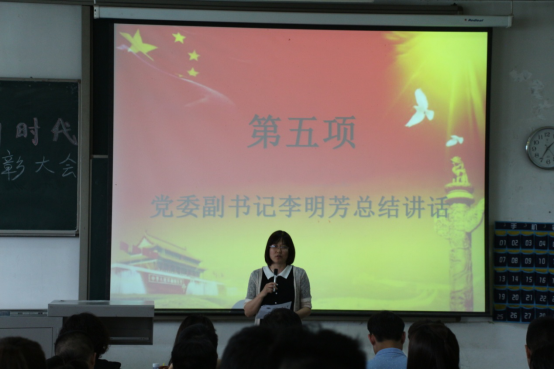最后,李明芳对本次表彰大会进行了总结,对获得的先进个人和集体表示了祝贺,同时也向全院青年学子提出:今年是“五四”运动100周年,也是建国70周年,在这样具有历史意义的时间,学院团委积极组织开展了青春心向党·建功新时代系列活动,青年学生们要像受到表彰的同学那样,树立远大理想,坚持发奋学习,注重锤炼品德,勇于开拓创新,始终艰苦奋斗,为实现中华民族伟大复兴的作出应有的贡献。