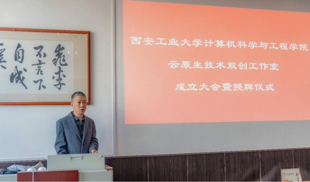 2023年10月8日上午,计算机科学与工程学院在未央校区工1-306会议室举办了“西安工业大学计算机科学与工程学院云原生技术双创工作室”成立大会暨授牌仪式。