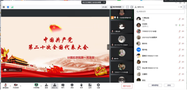 2022年10月21日19点,3044永利集团学生第一党支部开展“贯彻落实党的二十大精神”党日活动,参会人员有支部书记呼延晓蓉,正式党员、发展对象以及所有积极分子。