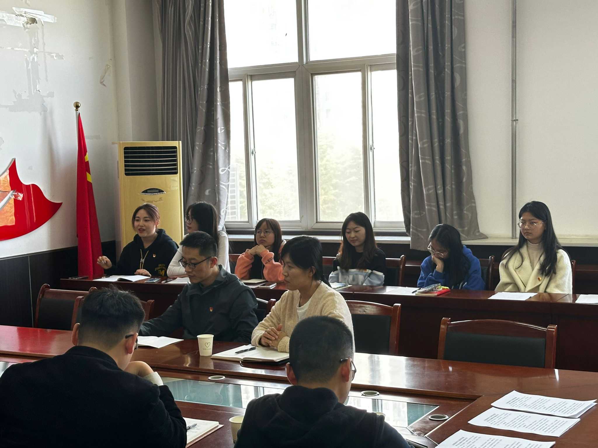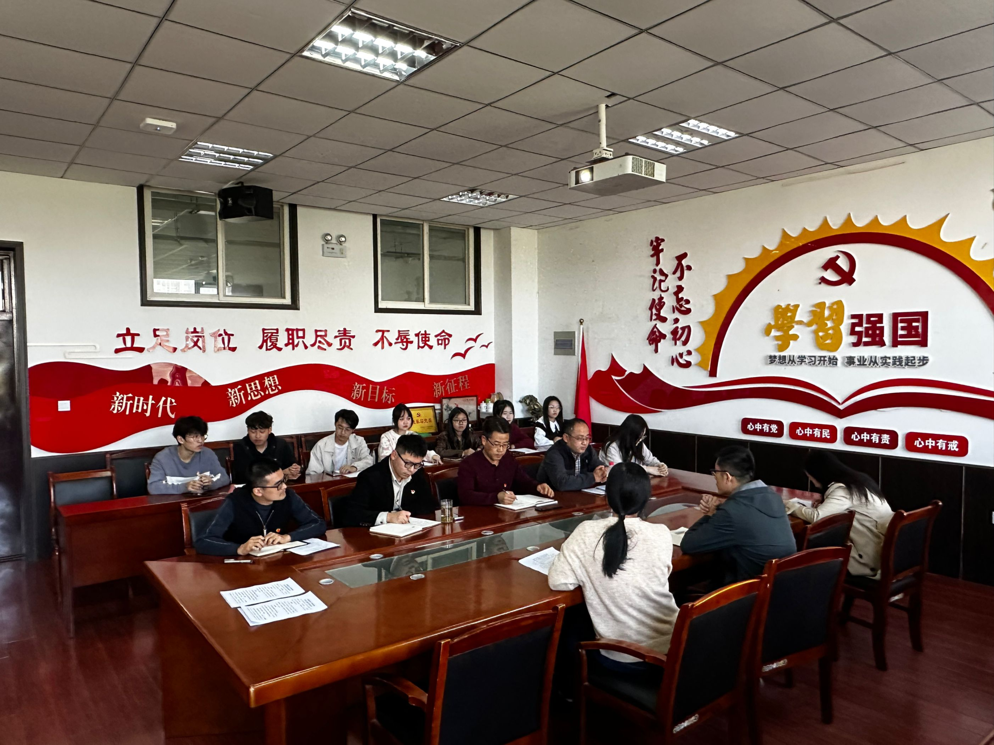 首先,胡老师介绍了参加此次会议的支部老师和各个专业的负责老师。接着学生第六党支部书记孙君在会上对全体学生党员提出三点要求:第一,以坚定的政治信仰和使命担当捍卫“两个确立”,坚定“四个自信”,深刻把握“两个确立”在贯彻落实党的二十大精神中的引领地位,坚定不移推动学习贯彻党的二十大精神往深里走、往实里走,为实现党的二十大提出的目标任务而团结奋斗。在国际大环境下,我们今天的自信是在立足自身实际的同时,在博采众长、独立自主基础上走出的自信。接着由在会学生进行发言,每个人提出了自己在专业学习,发展前景的系列问题,专业负责老师认真进行了一一解答和未来规划指导,使学生在学习生活和未来就业过程中有了进一步的努力方向,会议最后,胡凯进行总结讲话,他充分肯定支部书记在党员学生中的引导作用,同时也希望全体党员们能再政治理论水平,专业技能素养上,更上一层楼。