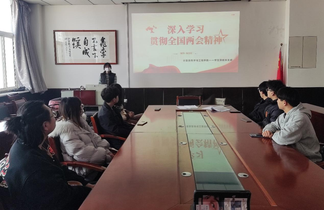 会议首先由副书记杨玉莹带领全体党员通过观看视频、研读文件,明确五个会议看点、十大工作内容。人民大会堂庄严雄伟、两会发出高举旗帜、真抓实干、团结奋进的强音,鼓舞着在座的全体党员。在交流环节中,全体党员畅所欲言,积极分享自己对两会精神的学习感想。纪律委员赵何超同志分享到:“通过学习“两会”精神,我深深地感受到国家发展的蓬勃动力和新一代青年肩负的时代使命。展望新学期,我将积极参与社会实践和志愿服务活动,努力学习专业知识,提高自身素质和能力。在实践中更好地贯彻和落实“两会”精神。”