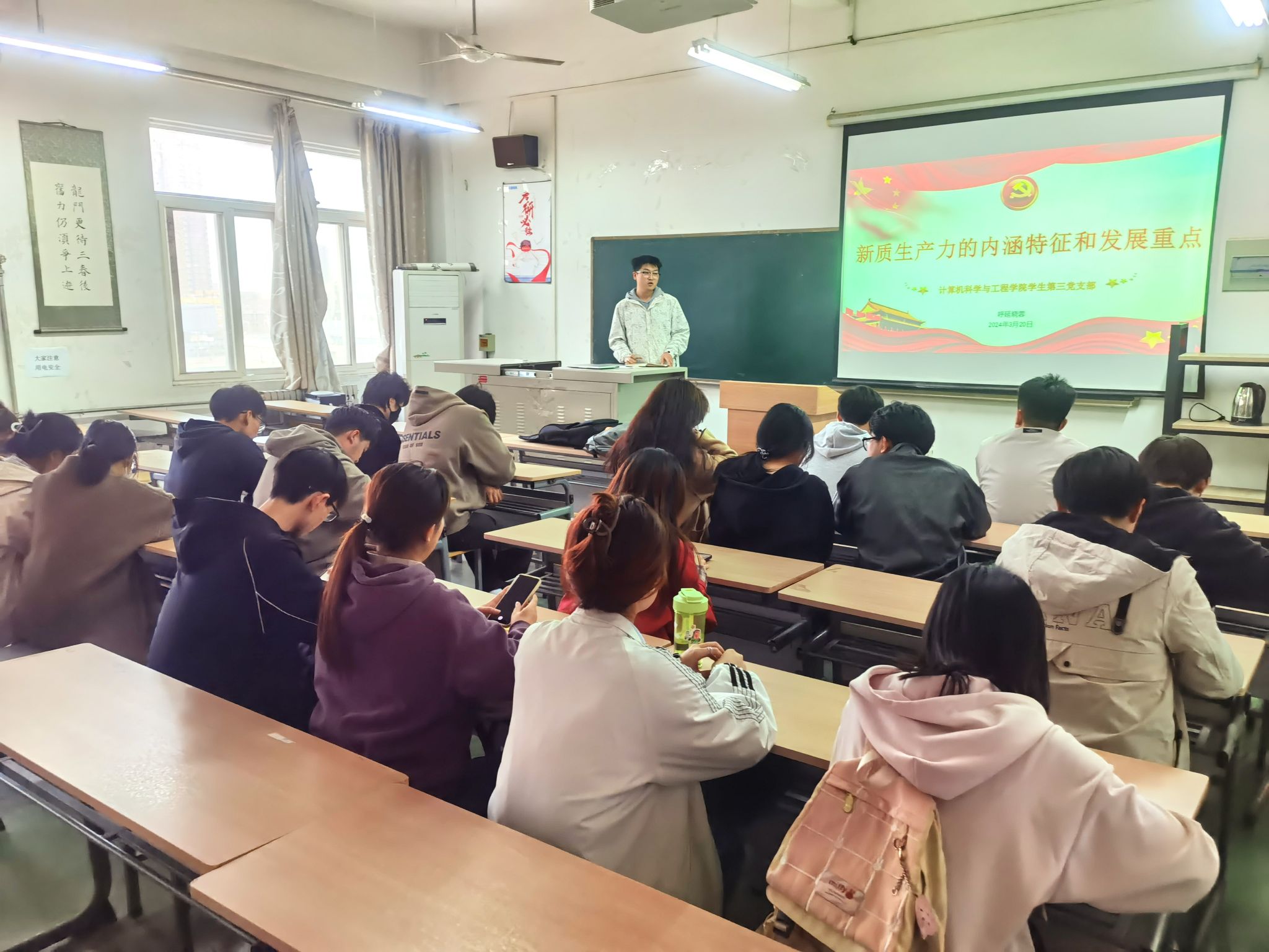 这个春天,新质生产力贯穿“两会时间”成为高频热词。为深入学习贯彻习近平新时代中国特色社会主义思想和两会精神,引导广大青年学子学思践悟,3月20日,3044永利集团学生第三党支部开展“新质生产力理论学习研讨”主题党日活动。会议由党支部副书记高齐勉同志主持,支部全体党员参加。