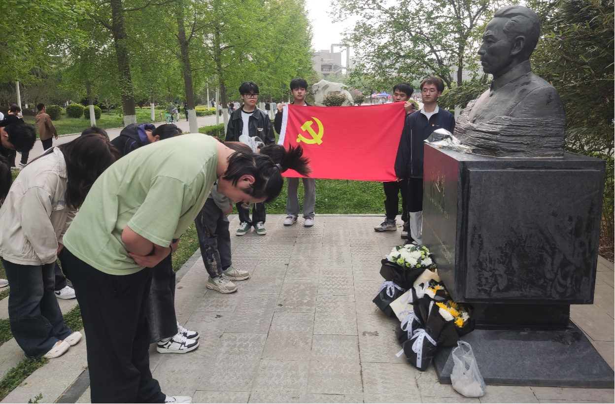 4月7日,全体党员、发展对象在赵雨柔老师的带领下前往瞻仰吴运铎雕像,进行祭扫与献花。