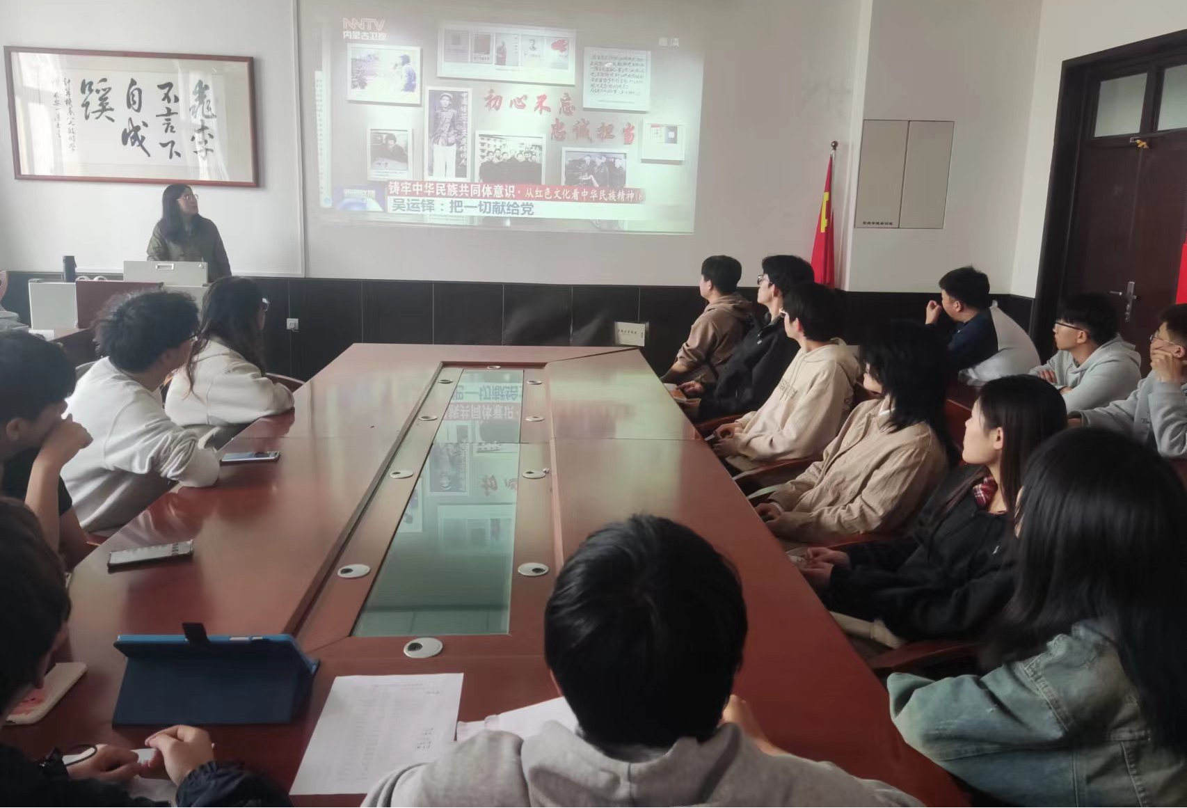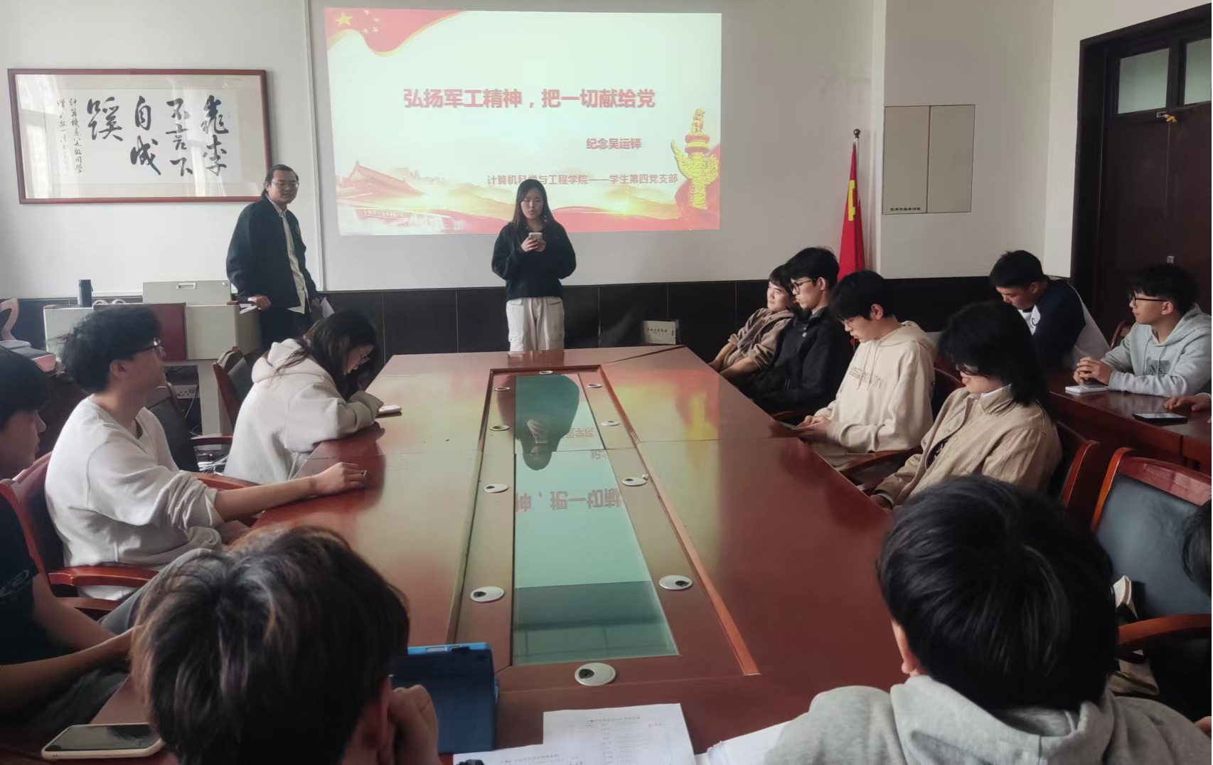 弘扬兵工精神,把一切献给党。为发扬党的优良传统,坚定党员理想信念,增强党员党性修养,2024年4月3日,3044永利集团学生第四党支部在工一306开展“祭先烈,寄哀思”——纪念吴运铎同志系列主题党日活动。学生第四党支部支部书记赵雨柔老师、全体党员、发展对象参加此次党日活动。