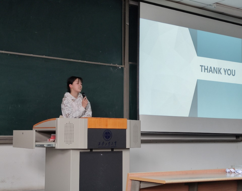 第五位分享者是我院2019级物联网专业学生翁昕愈,她坦言讲出自己没有竞赛经历,但却能认识自己,找准自己定位。她选择了测试开发为就业方向,从大三开始就为之做准备了,开始学习写的一些Python脚本,同时也要学一些测试方面的相关知识。她指出要注重基础知识,一定要扎实基础。鼓励学弟学妹们坚定目标、脚踏实地,锲而不舍向梦想进发。